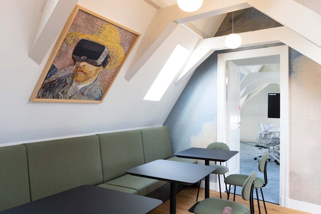 Each room in the building is dedicated to one of the elements from the Godai philosophy. The boardroom, for example, is designed around the element of Wind, symbolizing growth, expansion, and freedom of movement. This theme is reflected in the choice of colors and materials, as well as in acoustic solutions to address the building’s existing sound issues, particularly the high reverberation time in the meeting rooms.